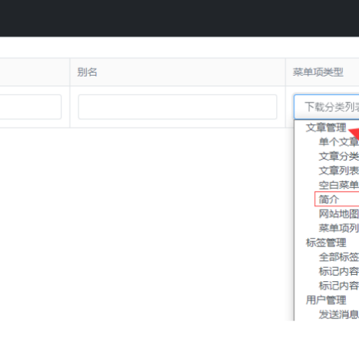 操作路径:网站后台-菜单管理-全部菜单项-添加(或者新增子类),菜单项类型选择【简介】,详细可以按下图箭头找到
