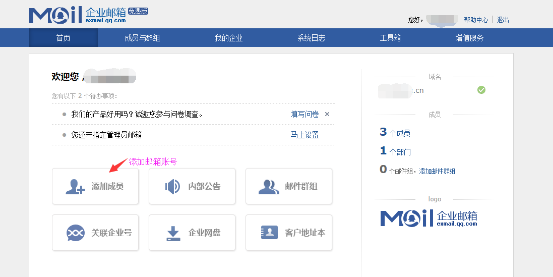 获取对应mail主机名,到域名控制面板操作MX记录解析(可咨询域名商操作)。二、新增企业邮箱成员登录登录腾讯免费邮箱设置邮箱