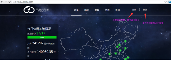 1、注册后登陆百度云加速网站:点击登录