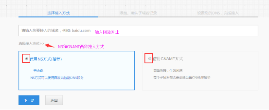 CNAME别名方式:某些子域名使用百度云加速服务时,可选择别名方式接入。