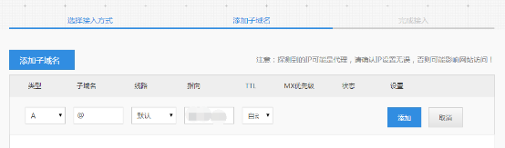 选择接入云加速的方式,有NS解析,CNAME验证两种,填写服务器的IP地址